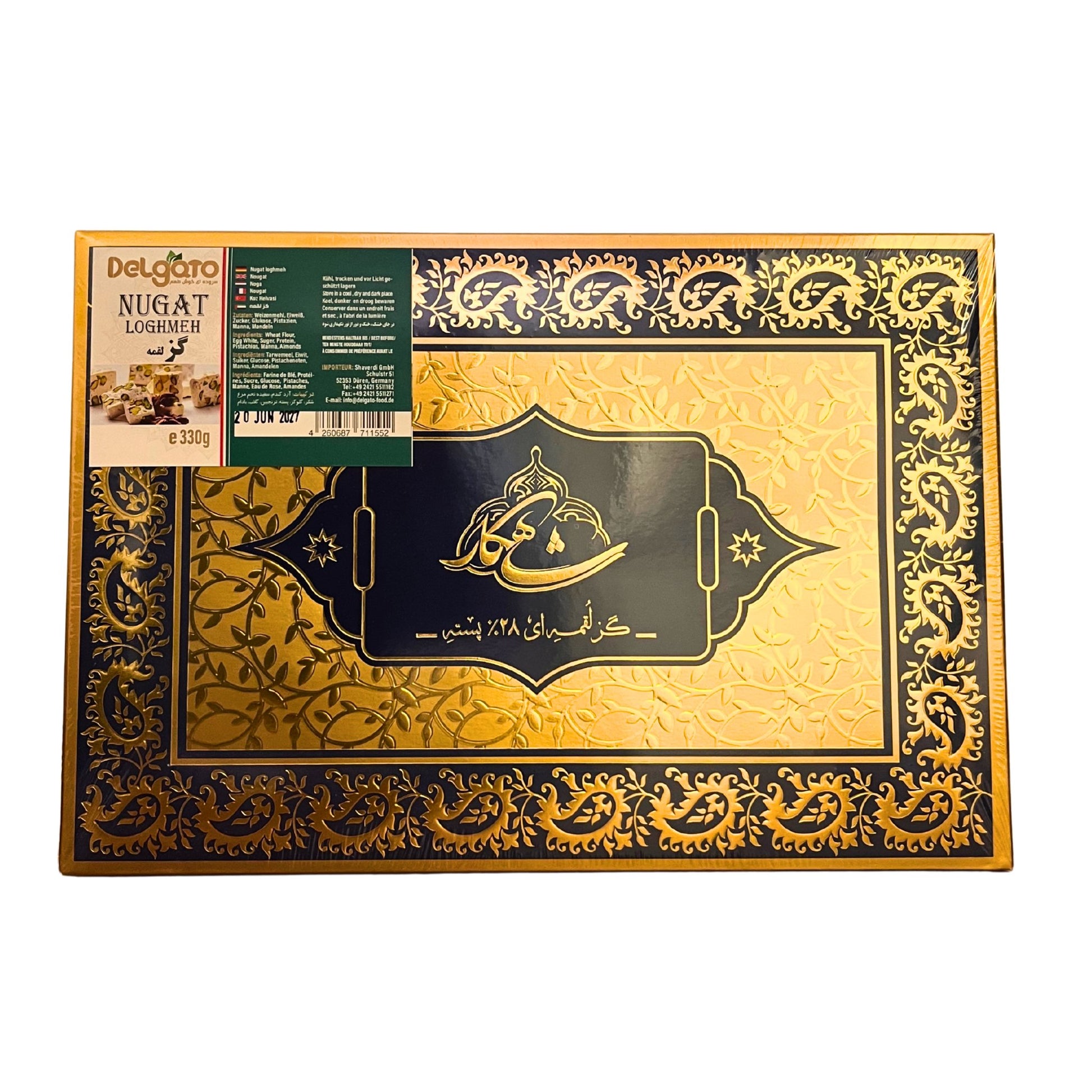 Gaz ist eine traditionelle Süßigkeit aus dem Iran und gilt als besondere Delikatesse der Stadt Isfahan. Die weiche, nougatähnliche Konsistenz entsteht durch die Verbindung fein geschlagenen Eiweißes mit aromatischem Zuckersirup. Der hohe Pistazienanteil von 28 % sorgt für ein angenehm nussiges Aroma und verleiht dem Gaz seine charakteristische grün-goldene Färbung.